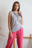 Особенности: Блуза прямая со спущенным плечом, без рукава. Низ проймы с манжетой. Горловина полочки и спинки V-образная. Низ удлинён по спинке, спинка без среднего шва. Застёжка полочки на пуговицы. Натуральные волокна в составе ткани делают блузку приятной по тактильным ощущениям. Свободный крой обеспечивает комфорт движениям. Блузка универсальна как в дуэте с брюками, так и с юбкой, на прогулке в парке и за городом.