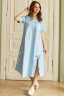Особенности: Стильное платье выполнено из легкой хлопковой ткани. Рукав короткий с отворотом. V-образная горловина обработана обтачкой с внутренней стороны. По полочке выполнены нагрудные вытачки, на груди левой стороны накладной карман. Справа выполнен клин от бедра по боковому шву, расширяясь к низу в сторону центра по передней части изделия. Низ клина выполнен углом на 7 см длиннее низа изделия. По правой стороне юбки выполнен разрез с обработкой внутренней обтачкой. По верху разреза 2 завязки для банта. Спинка цельнокроенная, без вытачек. Отличное свободное, легкое платье для жаркого лета!