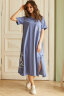 Особенности: Стильное платье выполнено из легкой ткани из хлопка. Рукав короткий с отворотом. V-образная горловина обработана обтачкой с внутренней стороны. По полочке выполнены нагрудные вытачки, на груди левой стороны накладной карман. Справа выполнен клин от бедра по боковому шву, расширяясь к низу в сторону центра по передней части изделия. Низ клина выполнен углом на 7 см длиннее низа изделия. По правой стороне юбки выполнен разрез с обработкой внутренней обтачкой. По верху разреза 2 завязки для банта. Спинка цельнокроенная, без вытачек. Принты по клину и карману делают эти детали более выразительными на общем фоне платья (возможны два варианта принта). Отличное свободное, легкое платье для жаркого лета!