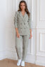 Особенности: Жакет удлиненный прилегающего силуэта отрезной по линиий талии из тканей компаньонов. Английский воротник придает строгость модели. Рукав втачной, длинный с патой по низу. По спинке талиевые вытачки для лучшего прилегания. По переду нагрудные вытачки и прорезные карманы с листочкой. Двубортная застежка на петли и пуговицы. В комплект входит пояс. Жакет - универсальный выбор для гардероба современной женщины.